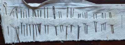 Au bout, passez si possible les aiguilles entre les 2 épaisseur de cuir et faite un nœud dedans, la couture est alors parfaitement invisible (un coup de marteau léger pour aplatir le tout si il faut).