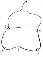 Pour une aumônière en cul de vilain (c’est le nom), j’en fait 5 : les extrémités puis les points stratégiques des courbes. Puis je fais le reste des trous une fois les nœuds fixés, ainsi les cuirs restent alignés: