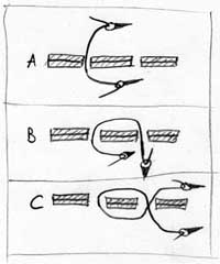 Puis pour chaque trou, on passe les 2 aiguilles. Et ainsi de suite.