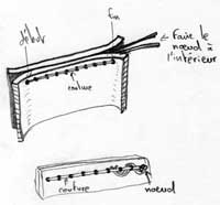 On passe le fil dans le 1er trou. De chaque coté du trou on doit avoir la même longueur de fil.