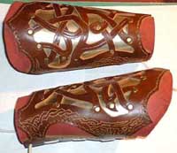 On mouille donc le cuir (jusqu'à plus soif) dans de l'eau tiède, on le fixe après sur la forme (pour des pièces d'épaules, par exemple), on le met au four entre 50 et 75°C (la température décide de la dureté finale, mais dépasser 75°C met en danger la vie de la pièce...) jusqu'à ce que le cuir soit sec (dépend du cuir, de l'épaisseur, du temps de trempage... faites des essais). N'oubliez pas que le procédé fonce le cuir naturellement.