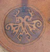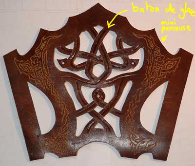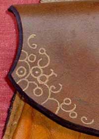 Une petite astuce pour décorer le cuir: l'effaceur. Et oui ça peut paraître étrange mais si vous repassez plusieurs fois un motifs avec un effaceur pour stylo-plume, vous verrez que le motif se dessinera d'un couleur plus foncée que la couleur originelle. :-)