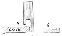 - La colle seule: colle spéciale cuir ou colle contact néoprène (la liquide peut être bue par le cuir et peut s’appliquer au pinceau en petite quantité, c’est donc plus pratique pour le travail minutieux). La colle seule ne dure pas dans le temps à cause des mouvements du cuir (il est souple, se déforme... bref la surface encollé va avoir du mal à tenir à la longue).