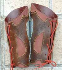 - Pour reproduire des pièces d’armure équivalente à une armure de plate ? Oui et non. Une pièce bombée, comme une coudière, genouillère, un plastron, si elle est faite en une seule pièce, elle doit être en cuir moulé (« bouilli »). Mais avec une astuce dans la forme et une couture, on peut s’en passer :